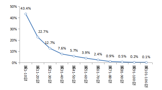 从汽车品牌来看,采集到的汽车互联网广告涉及的品牌有106个,其中发布广告数量前三十位的汽车品牌广告数量占比达到78.8%,前十位的汽车品牌广告数量占比达到43.4%。