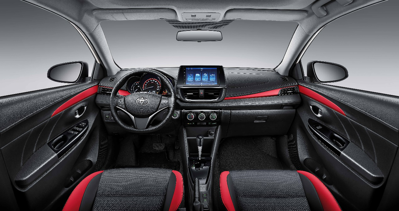 【新增的黑红双拼内饰(威驰专属)】