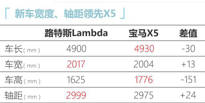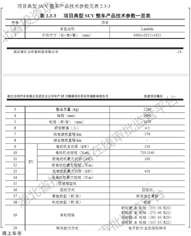 网上车市从湖北省生态环境厅了解到,路特斯(吉利控股英国跑车品牌)国产项目将落户武汉,在吉利武汉工厂投产,于2022年开始投产。首款车型为中大型纯电动SUV Lambda,这也是该品牌首款SUV车型,2022年产能为2万辆。路特斯Lambda车长达到4米9、轴距为2.999米,整体尺寸与宝马X5相当,动力方面提供燃油、混动、纯电动三种动力形式。Lambda上市后的主要竞品为华晨宝马X5(含iX5)、奔驰GLE、保时捷卡宴、特斯拉Model X等车型。