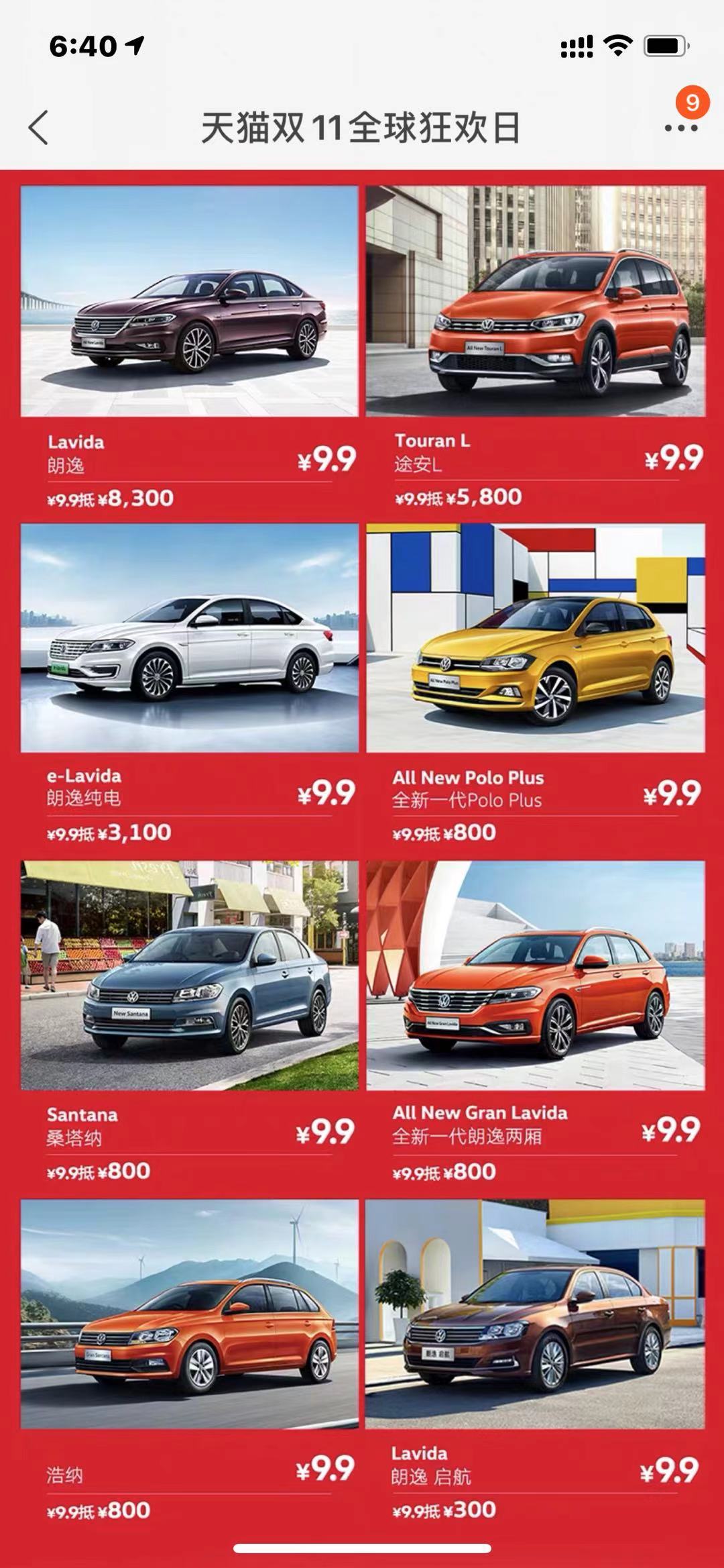 为响应刺激汽车消费的政策号召,以及促进旗下品牌销量,上汽集团在上半年举行了大型线下促销活动,多款新车5.5折销售,包括上汽大众、凯迪拉克、别克、荣威等品牌。同时,上汽系产品也多次出现在电商平台上,进行折价销售。而在双11来临之际,上汽又与阿里巴巴合作,对旗下新车进行补贴,从而实现降价促销的效果。
