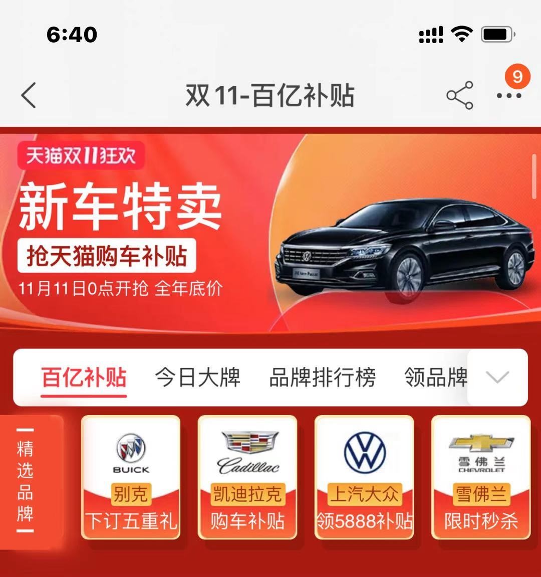 据了解,在此次天猫“购车补贴”活动上,包括上汽大众、别克、雪佛兰、凯迪拉克等品牌均参与到相应的促销活动中。