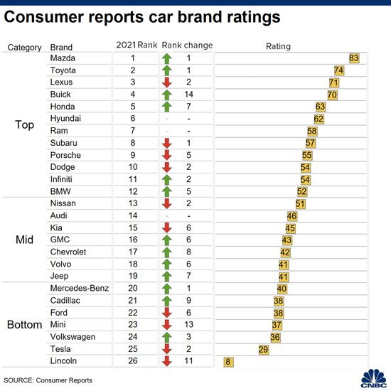 这项调查涵盖了2000年至2020年的车型,排名基于超过30多万部车辆车主提供的数据。然后,该组织根据各品牌报告的问题数量和其他衡量指标,预测可靠性得分。