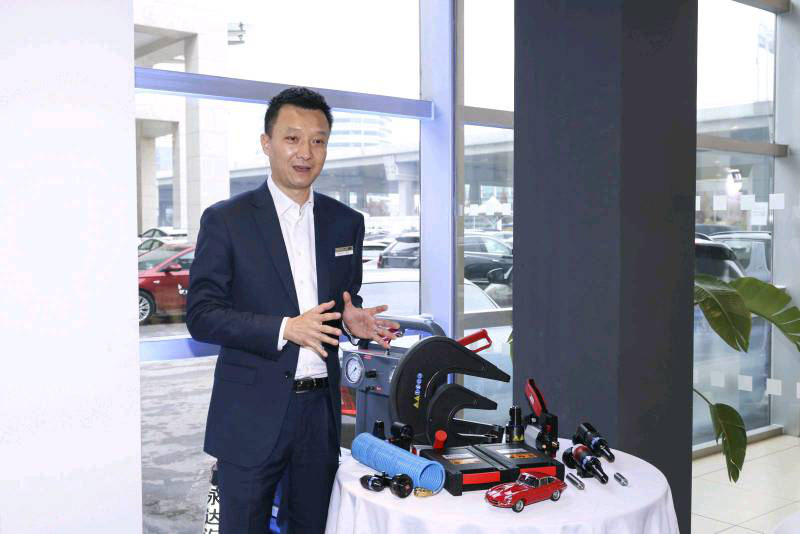 客户服务商务副总裁毛军展示并讲解高品质配件