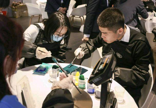 媒体嘉宾进行水性漆调色体验,凸显捷豹路虎卓越服务品质
