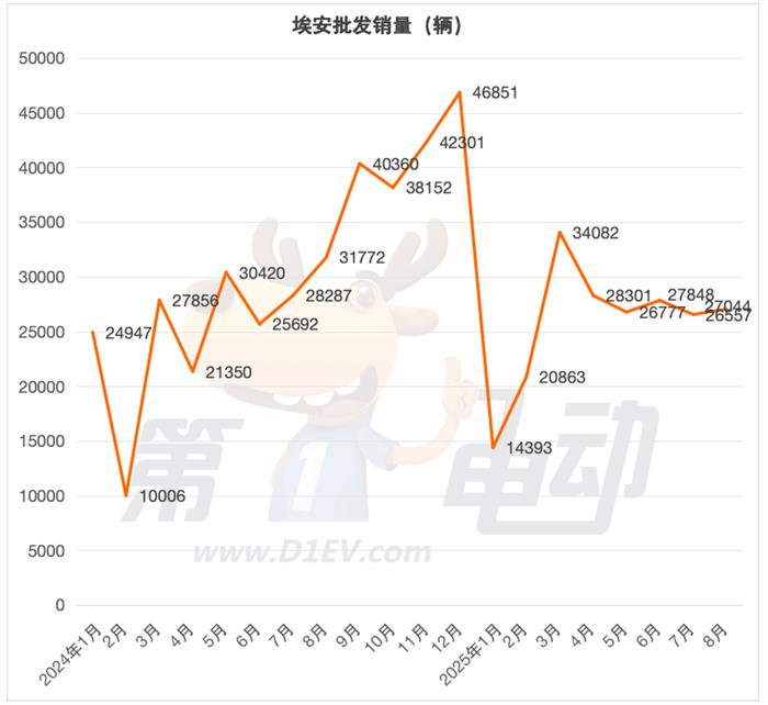 埃安8月销量为27044辆,尽管环比7月微增1.8%,但同比下降23.5%的数据,表明其正面临显著的增长瓶颈。从企业自身来看,埃安的产品布局相对集中在中端市场,而该市场是新能源汽车竞争最激烈的领域之一,比亚迪、吉利、长安等车企均在此投入大量资源,导致埃安的市场空间被不断压缩。