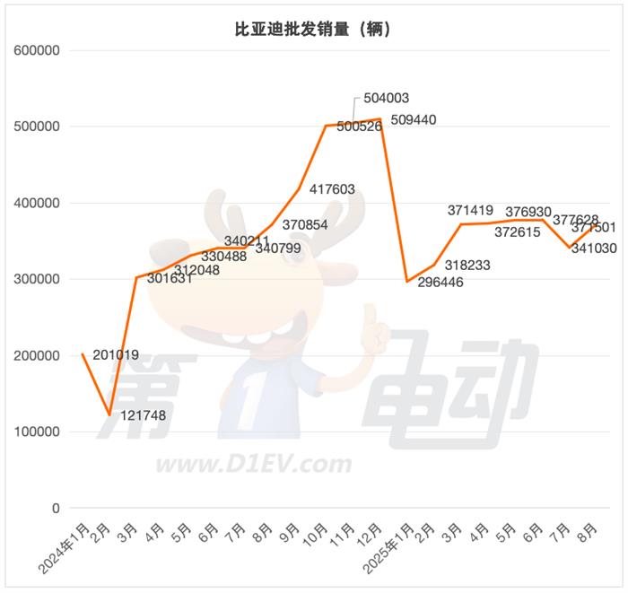 比亚迪8月销量达371501辆,环比增长8.9%,同比仅增长0.2%,增幅较以往大幅放缓,市场增长动力面临阶段性考验。