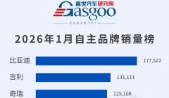 2026年1月乘用车自主品牌销量榜:市场集中特征凸显,头部三强均破12万