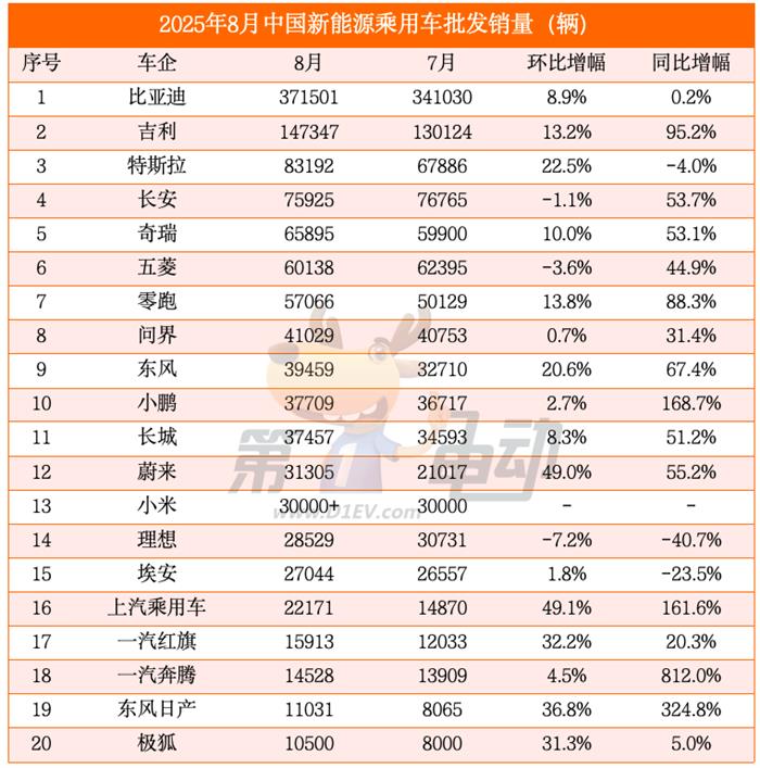 8月新能源车销量榜:吉利逼近15万辆再创新高,比亚迪增幅放缓或下调年度目标