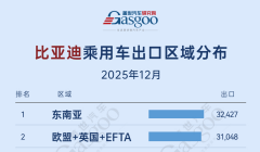 从2025年12月中国自主车企乘用车出口区域分布来看,比亚迪、吉利、奇瑞进行了差异化突围,显示中国汽车全球化布局的多元韧性。比亚迪强势霸榜东南亚新能源市场,以核...