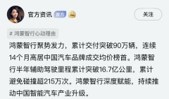 8月25日,鸿蒙智行官方宣布,其累计交付突破90万辆,连续14个月高居中国汽车品牌成交均价榜首;与此同时,其半年辅助驾驶里程累计突破16.7亿公里,累计避免碰撞...
