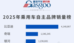 头部单品牌破400万辆,第二梯队竞争白热化丨2025年乘用车自主品牌销量榜