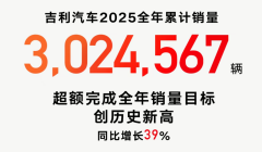 吉利汽车2025年累计销量超302万辆,2026年冲击总销量345万辆