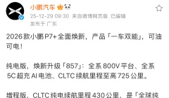 小鹏汽车2026款P7+今日官宣,推出纯电与增程双版本
