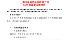 上汽集团发布年度业绩:2020年净利润预计约为200亿元,同比减少21.89%