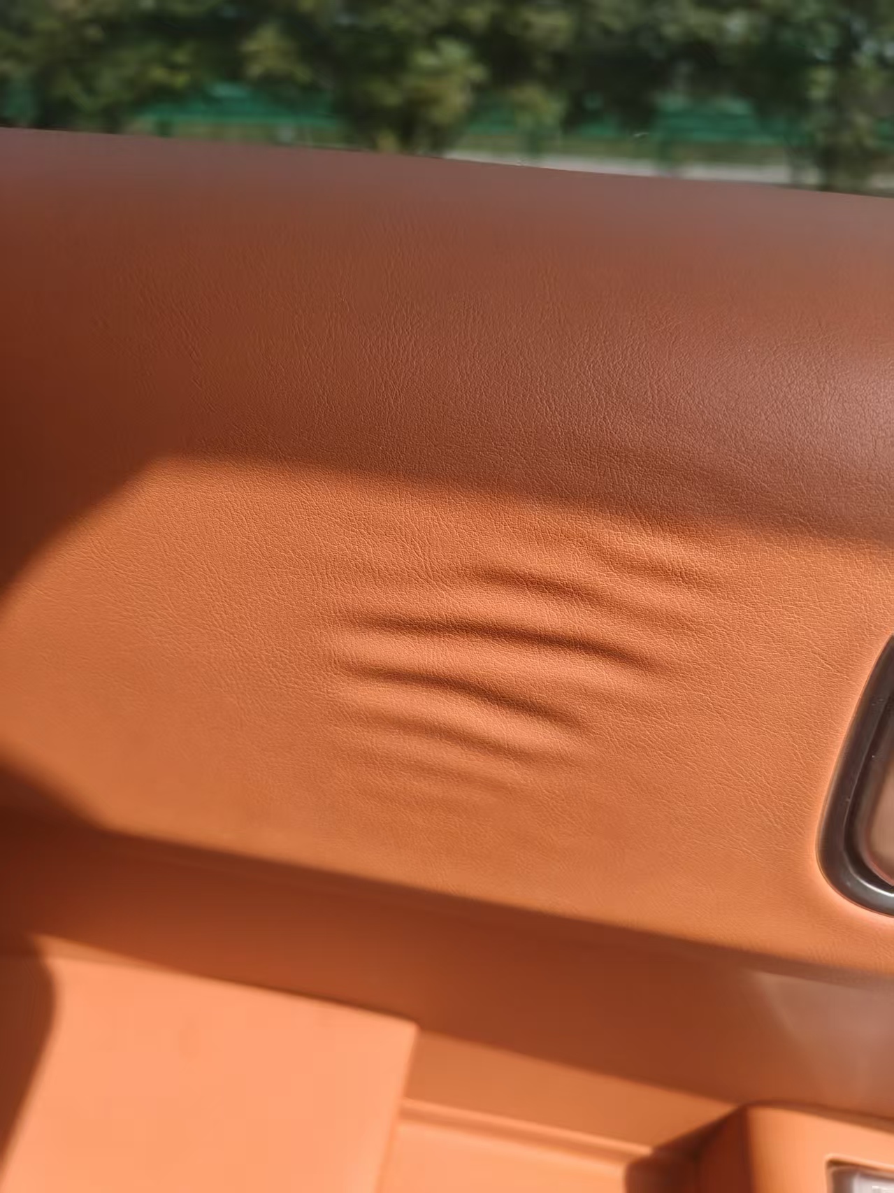 内饰板表面的皮革材料出现褶皱的原因主要分为两种,一是皮革与内饰板结合分离,二是皮革表面变形。第一种情况常见原因是粘接问题,高温、外力、粘接不牢固等原因都有可能。第二种情况常见原因则是除了皮革养护不当外的意外情况,如外力、化学品、高温等等。