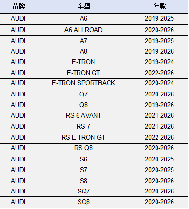 因倒车影像存在无法正常显示的软件缺陷,大众集团北美公司(奥迪品牌)将召回部分2019-2026多款车型,预估受影响车辆总数达356,649 辆,具体召回车型清单如下: