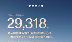 极氪3月交付新车29318辆,同环比双增