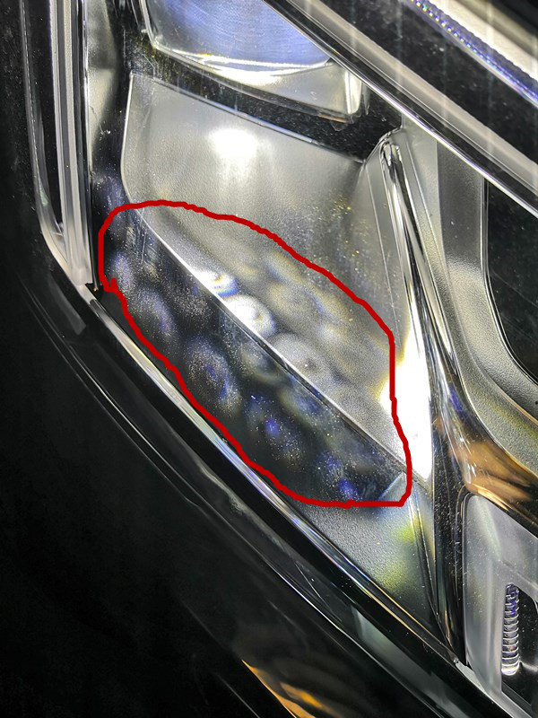 从您发布的图片中看,像是LED灯泡的投影,根据主机厂官方发布的车辆特点,奥迪A4L主要矩阵式和非矩阵式两种配置,多个LED灯光共同作用。根据您的描述,白天周围光线强,环境光线高于前大灯看不到该情况,晚间周围环境光线弱,那么前大灯灯泡出现阴影是正常的物理现象,建议您继续观察使用。